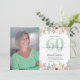 This elegant 60th birthday invitation features space for a vertical photo and is accented with a soft pastel watercolor floral frame across the top and bottom. The design combines modern typography with trendy calligraphy, creating a refined and stylish look—perfect for celebrating a special woman’s milestone birthday.