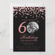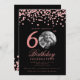 Photo 60th Birthday Rose Gold Confetti Black Invitation