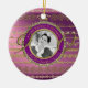 Celebrate your milestone birthday or that of a friend or family with this gorgeous gold and purple frame decorated with diamonds, sparkling gems and a variety of gold chain. Numbers in gold glitter emphasize the special age. Perfect for your favourite portrait, the frame will turn your photo into a keepsake treasure. Replace the sample photo with your own. Customise the text for a personalised gift. (IMPORTANT NOTE: This item’s design is not made of real metal or precious stones. Digital software was used to simulate metallic/gemstone textures. The image is printed on a flat surface.)