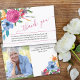 Funeral thank you card with elegant handwritten script and watercolor floral arrangements of colourful flowers. The template is set up for you to add an 'in loving memory' photo to the back with your loved one's name as well as your personalised message of thanks on the front.