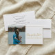 Announce your wedding date change with this modern and elegant "Change the Date" card, featuring a romantic photo of the couple and a stylish thin gold border. The design highlights the message in an easy-to-read gold script, combining sophistication with clarity. With customisable text and the option to add your own photo, this card offers a thoughtful and graceful way to update guests on your rescheduled celebration.