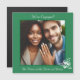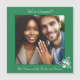 The design showcases a personalised couple's engagement photo, highlighted by a beautiful arrangement of three white roses in the corner. It includes two customisable text fields for the announcement, currently displaying "We're Engaged!" alongside the names of the bride and groom. Framed in a forest green, the colour can be adjusted to match your preferred shade or wedding theme. Elegant and versatile, this design is ideal for a range of couple's events, from engagements to weddings and anniversaries.