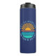 A round photo template on a dark blue background. Click personalise to change the sunset to your own image, and the text to your own, or buy it as is.