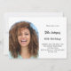 Add your own vertical size photo. An arch shaped photo frame. A chic white background colour. Personalise and add a name and party details.