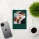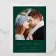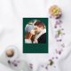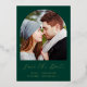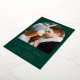 This simple, minimalist Save the Date card features a boho photo arch above the words "Save the Date" in elegant gold foil handwriting script, followed by the couple's names, wedding date and city in sans serif font on an emerald green background. Add a more detailed message with additional information on the reverse.