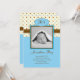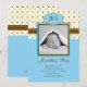 Modern custom birth announcement for a boy. Add your own photo and words. Features the baby initials monograms and a cute polka dots background in blue and brown. Classy yet playful.