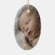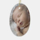 Baby's first christmas ornament customisable with your own baby photo in yellow, red and green with festive snowflakes and stripes pattern. A memorable christmas gift for any new mum.