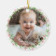 Commemorate your baby's first Christmas with this elegant, customisable round photo ceramic ornament. The design features a charming, minimalist wreath, handwriting font, offering a blend of rustic simplicity and timeless elegance. Upload your favourite photo and personalise the ornament with your baby's name, beautifully showcased in a delicate script font.