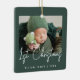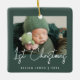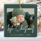 Celebrate baby's first Christmas with this modern minimalist photo keepsake ornament. The white text reads "1st Christmas" in trendy handwriting script on a dark green background. Easily replace the sample image with your favourite photo, and add baby's name and the year below.