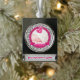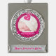Photo Baby's First Christmas Pink Heart Damask Silver Plated Banner Ornament