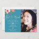 Be proud, rejoice and showcase this milestone of your favourite Bat Mitzvah with this sophisticated, personalised photo invitation! A chic, stunning, pink and peach floral watercolor with faux gold foil script typography and modern white sans serif type overlay a dusty turquoise teal blue background on the left side, your personalised photo on the right. Additional watercolor flowers and a gold Star of David overlay a dusty turquoise teal blue background on the back. Personalise the custom text with your Bat Mitzvah’s name, date, and venue information. Guaranteed to add stylish fun to her special occasion!