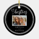 Photo Besties Modern Minimal Black and White Ceramic Ornament. Celebrate your unbreakable bond with this charming "Besties" photo Christmas ornament. Featuring a sleek black background with elegant white script and heart accents, this ornament is designed to showcase your favorite memory with your best friend. Simply upload your most cherished photo to create a unique keepsake that captures your special friendship. It's the perfect way to commemorate your adventures and inside jokes, making it an ideal Christmas gift for your ride-or-die bff. Cherish your friendship with this beautiful, personalized ornament.