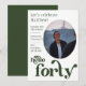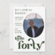 "Hello Forty" Birthday Invitation with Photo and dark green text.