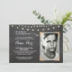 Add your photo to this rustic chalkboard string lights invite. Add any age. Back print included.