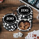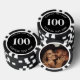 These custom poker chips feature a bold number on the front instead of initials, which can be personalized with any number up to four digits. The front has a sleek black background with crisp white fonts for a classic, striking look. The back includes space for a photo, making them perfect for weddings, mancaves, bachelor parties, or as a memorable gift. All text, numbers, and details can be fully customized to fit your style or event theme.