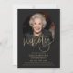 Photo Black and Gold Script 90th Birthday Invitation. Celebrate in style with this modern 90th birthday invitation featuring a full photo layout and elegant handwritten gold script. The sleek black background and contemporary typography create a glamourous, sophisticated design that’s perfect for marking an unforgettable milestone. Personalise with your photo and event details for a chic keepsake.
