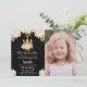 Photo Black Floral Glitter Princess Birthday Invitations