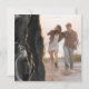 The left-hand side of this elegant modern square wedding invitation features a black watercolor agate border trimmed with faux gold glitter. The right side features a photo of the couple, softened with a white screen to highlight the text overlay. The customisable black text combines handwriting, copperplate and italic. Repeat the same image on the back, or choose a different photo.
