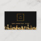 A black background, with a faux gold city skyline as decor. Template for your business logo and a text on front. Golden letters