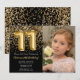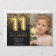 Photo Black Gold Kids Girl 11th Birthday Party Invitation