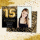 Photo Black Gold Kids Girl 15th Birthday Party Invitation