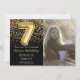 Photo Black Gold Kids Girl 7th Birthday Party Invitation