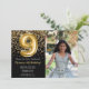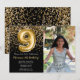 Photo Black Gold Kids Girl 9th Birthday Party Invitation