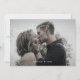 Couple names Holiday Christmas Card. Photo covers entire front. Message. White Text. Simple. Filter applied to photo.