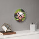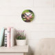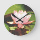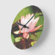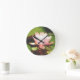 Photo Blue Dragonfly pink flowers Lake Arrowhead Round Clock