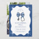 Photo Blue Toile Bow Nurse School Grad Invitation
