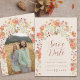 Announce your special day in style with this Wildflower Photo Arch Fall burnt Orange terracotta and beige Wedding Save the Date invitation. Blending autumnal charm with elegant sophistication, this design features hand-painted watercolor wildflowers arranged around a graceful arch. The rich, seasonal palette—burnt orange, terracotta, purple, yellow, coral, burnt umber, peach, and soft pink—captures the warmth and natural beauty of fall.