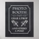 PHOTO BOOTH - GRAB A PROP & STRIKE A POSE sign featuring a black and white chalkboard style design. Perfect for your holiday party.