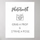 If you're having a photo booth at your wedding, birthday party, baby shower, or any event, you'll need a sign or poster to encourage guests to take pictures! "Grab a prop and strike a pose!"