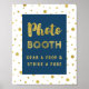 Photo Booth Wedding Sign Navy Blue Gold Confetti