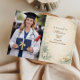 This elegant dentist graduation design features a soft botanical frame paired with dental symbols such as a white coat, dental tools, diploma scroll, and smiling tooth illustration. The calm green and ivory palette creates a polished yet welcoming look, perfect for celebrating dental school graduation, white coat milestones, or a dentist’s professional achievement. Fully customizable with names, dates, and event details.
