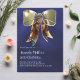 A navy blue, uneven coloured background, decorated with a bow shaped photo frame. Personalise and add a name and party details.