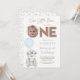 Photo Brown Blue Balloons Beary First Birthday Invitation