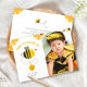 “Thanks for buzzing by.” A sweet, playful visual of a cute, kawaii bee, beehive, patchwork honeycomb, orange yellow calligraphy script over white and the photo of your choice, help express your appreciation. More honeycomb, an additional bee, plus soft grey typography adorn the back. Say thank you to your guests with these adorable, modern, simple gender neutral birthday custom note cards. Customise with their photo. On the back, type in your personal copy using the easy template provided or delete altogether for your handwritten note. Matching invites, napkins, plates, stickers, banners, blankets and other birthday goodies are also available in this special and fun collection. Guaranteed to add a stylish touch to your correspondence!