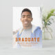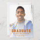 Graduation announcement featuring custom photos on the front and back. The word "Graduate" appears in bold burnt orange typography with a sporty look ideal for the student athlete, with the graduate's name, school, and year of graduation below in sans serif font. The back features a horizontal photo, with space for details about your graduate's achievement and future plans in white text on a burnt orange background. A good choice for high school or college graduation.