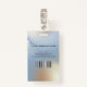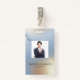 Modern photo business ID identification card with barcode over blue gold alcohol ink texture. Additional information can be added to the backside of this business ID badge