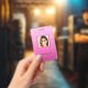 Photo Business ID On Pink Polygonal Badge