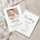 Share a meaningful tribute with this modern Celebration of Life photo memorial invitation. Featuring a clean, elegant layout with refined script typography, this customizable card offers a beautiful way to invite family and friends to a remembrance or celebration of life service. Personalize with your own photo and event details to create a timeless and heartfelt keepsake.