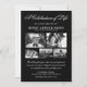 Celebrate the meaningful life of your loved ones with our elegant personalised funeral memorial invitations. Featuring a stylish black background and a modern celebration of life template, it gives a heartwarming touch to sharing their memory. The design gracefully integrates five selected photos of your loved one, creating a delicate yet powerful tribute to their remarkable journey. Commemorate life's unforgettable moments with us.