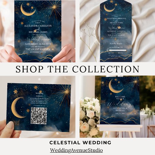 Photo Celestial Midnight Blue Stars Moon Wedding Save The Date