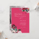 Couple photo on the back. Simple Elegant Invitation. Wedding invitation. Both parents listed. White Text. Cerise (Contact designer for changes..venues, parents, etc.) Black and white filter applied to photo. Overlay of opaque cerise over photo.