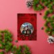 This elegant Tibetan wedding invitation features a round photo surrounded by real gold foil cherry blossom branches and a real gold foil endless knot symbol on a shimmering floral red background. Bride and groom names in an elegant classic script.