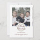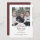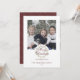 Personalised Photo Christmas card featuring a watercolor holly wreath with a red and watercolor patterned back. Green foliage and red berries.