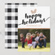 Celebrate the festive season with this elegant black, white & copper christmas cards featuring a family photo to be replaced with your own, the words "happy holidays", two copper pine cones, your name and the year. The reverse is a classic black and white tartan pattern print.