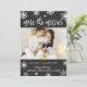 Photo Christmas Pregnancy Announcement Cards. Expecting parents! Modern white hand lettered typography "more the merrier" script card to share your happy news with family and friends in the holiday season. Feature a beautiful white snowflakes on dark grey or charcoal background and at the middle a horizontal photo template. At the backing grey background with white snowflakes. You can personalise the design by replacing the sample text and photo. #3343 If You need help or matching items please contact to me!