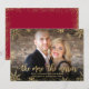 Photo Christmas Pregnancy Announcement Cards. Expecting parents! Modern faux gold foil hand lettered typography "the more the merrier!" script card to share your happy news with family and friends in the holiday season with gold glitter and gold snowflakes frame. At the backing red colour background with gold glitter frame. You can personalise the design by replacing the sample text and horizontal photo. #3343 If You need help or matching items please contact to me!